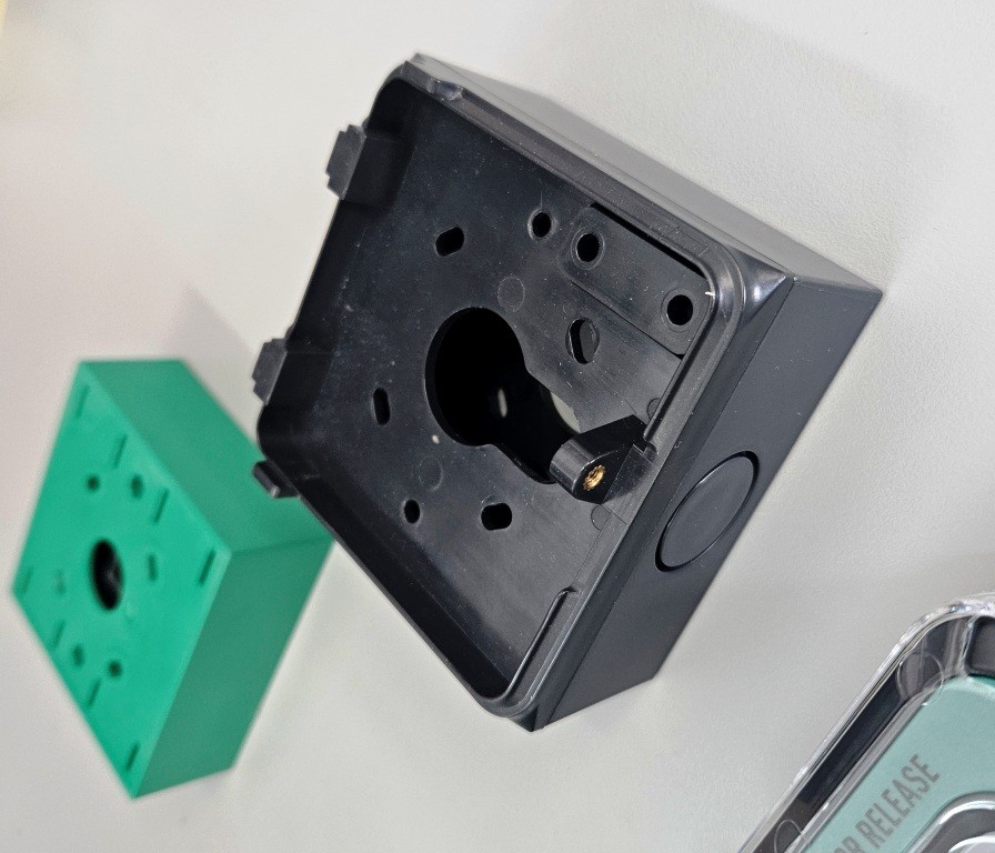 If the existing breakglass base has cable entries from the side, installers may choose to leave the base in place and use the supplied screws to attach the EBG on top. Alternatively, the base can be swapped for the EBG-MB-C mounting box, which is colour-matched to the EBG-C.